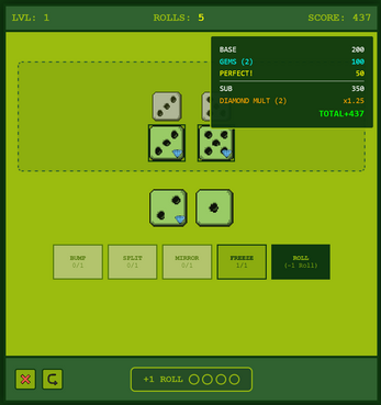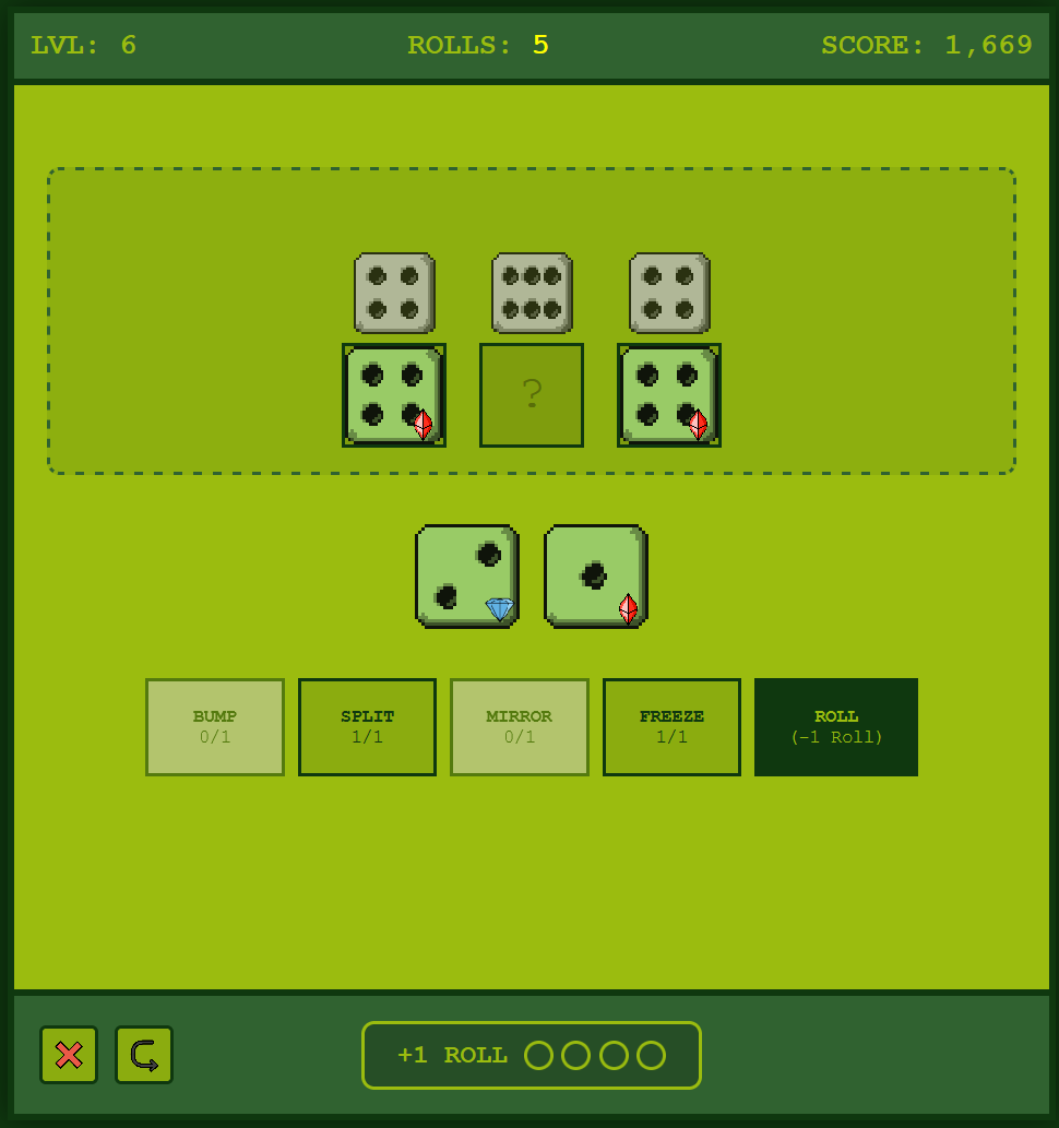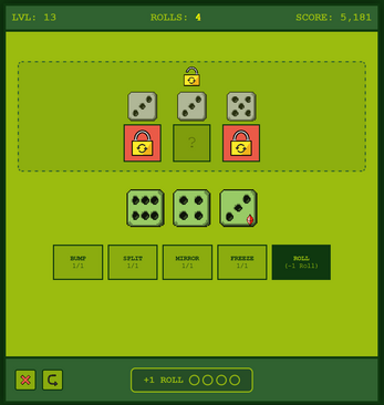 A dice puzzle game where every roll counts. Match the dice in each puzzle using a limited number of rolls - but you have tricks up your sleeve.