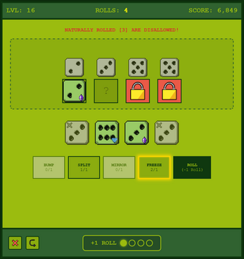 - FREEZE - Lock a die to keep it from being rerolled.